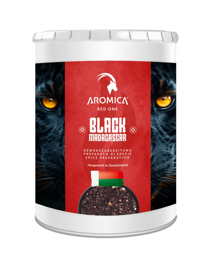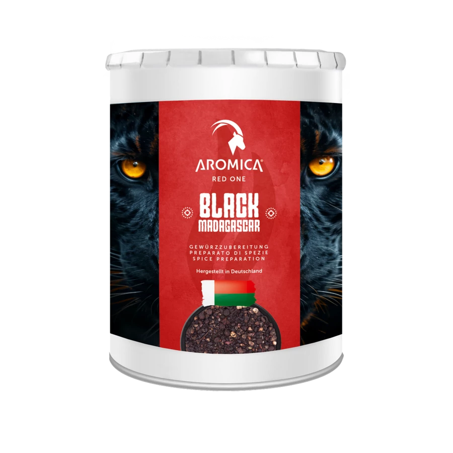 Ingredients: sea salt, Madagascar bourbon pepper, black SEZAME, allspice, Bhutanese pepper, chilli, black garlic, gluten-free ZABrost, colouring: active vegetable colour; rapeseed oil, cinnamon, natural pepper extract, smoke flavour, black cumin, lemon extract.