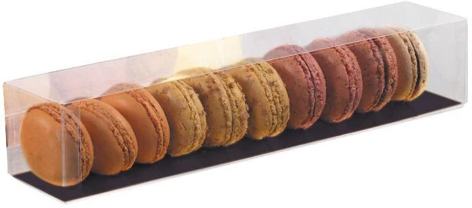 Box of 6 macarons, with black base (18x4.5cm) - 100 pcs