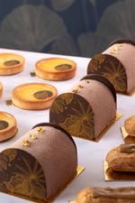 These decorative elements are made using a thermoformed recyclable PET sheet. These decorations allow you to change the look or shape of a dessert or a cake without changing the recipe. Thanks to this, the decoration of the cakes is restrained and delicate, natural and free of added colouring. At Chocolatree, a whole range of these moulds is available and can be used in different ways. It's up to you to choose the model or models that inspire you the most!