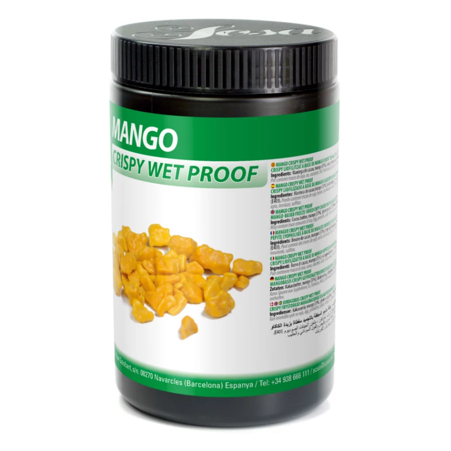 Freeze-dried mango with a crunchy cocoa butter coating.