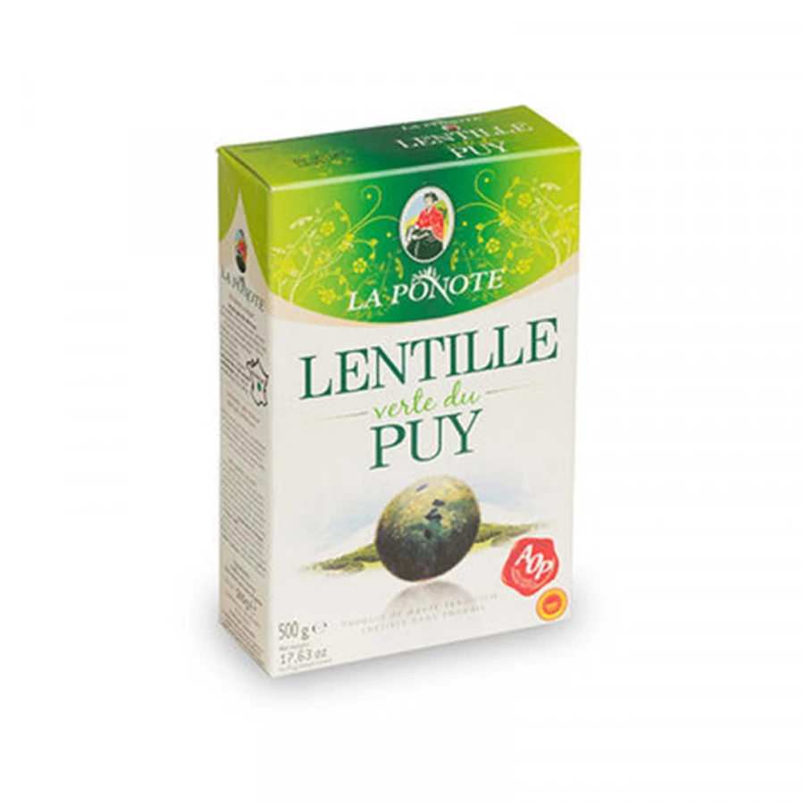 "AOP" protected green lentils from Le Puy in the south of France.