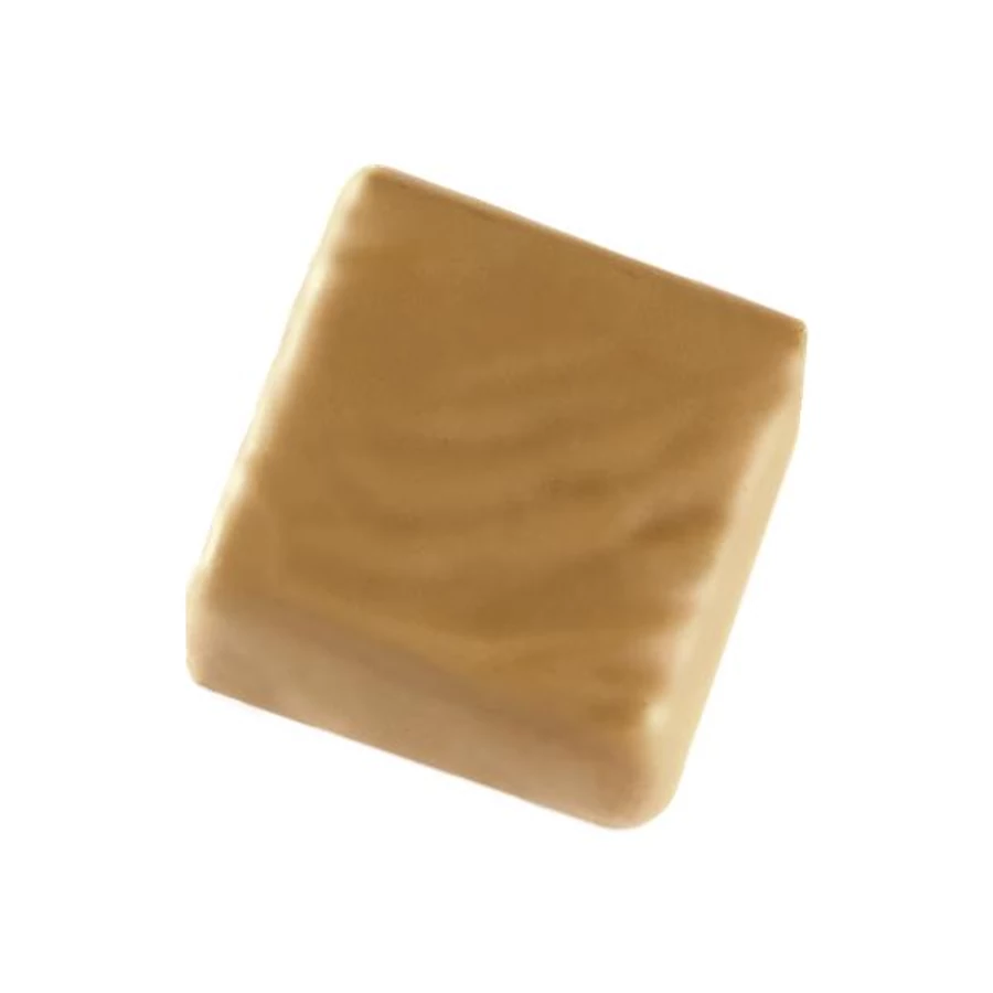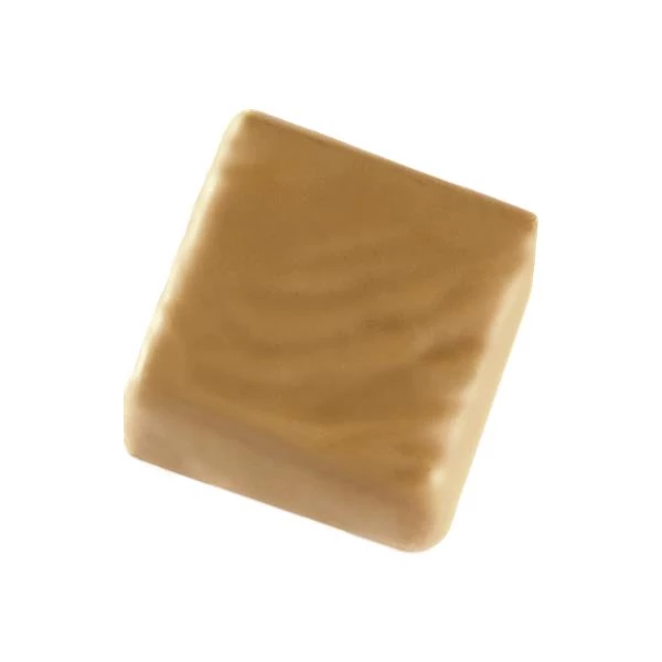 Caramélia 36% milk chocolate ganache with rich salted caramel notes, Dulcey 35% blonde chocolate coating.