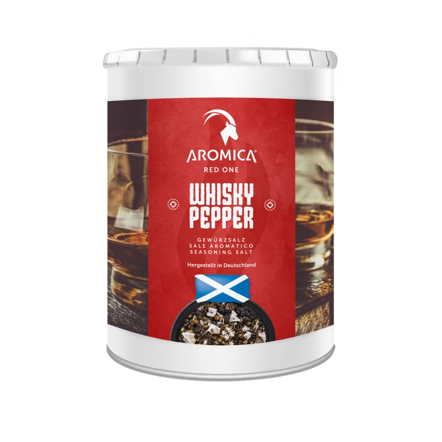 Összetevők: Whisky bors* (fekete bors, whisky), piramis sókristály, vörös só (só pehely, vörösbor), tengeri só *Alkoholtartalom: 3,6% (a gyártás idején)