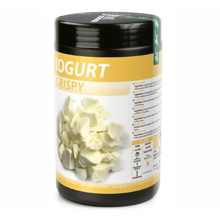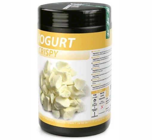 Crunchy, freeze-dried yoghurt pieces, 2-6 mm in size.